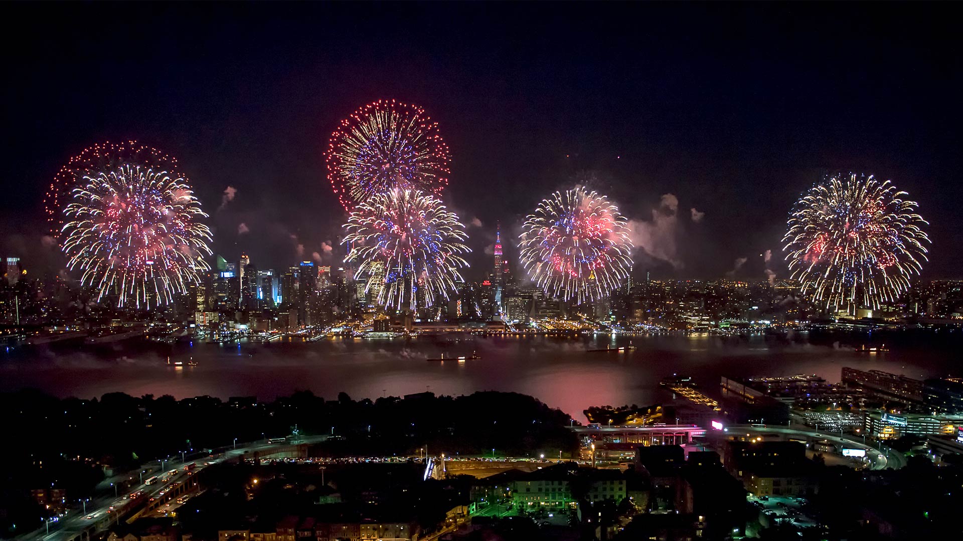 烟花 over the Hudson River on the Fourth of July
