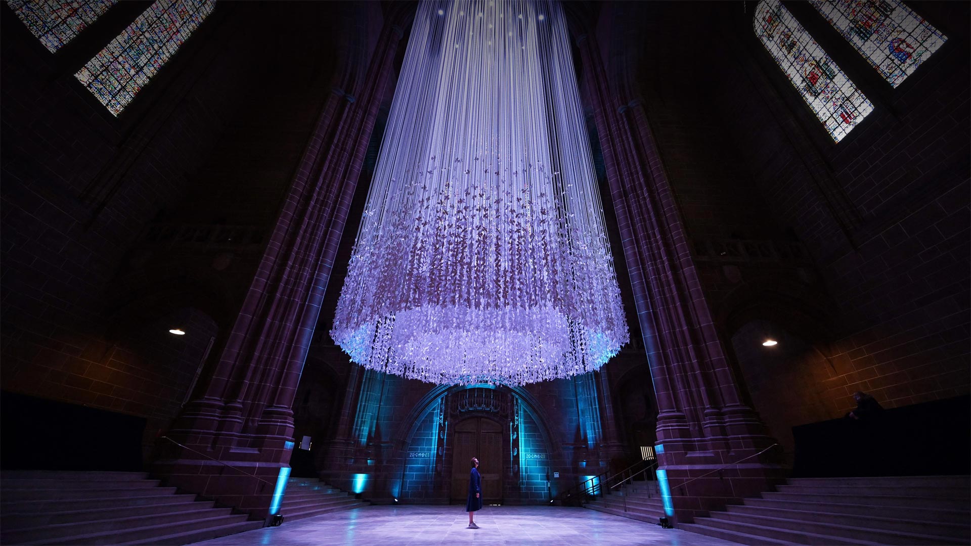 'Peace Doves' by artist Peter Walker in Liverpool Cathedral